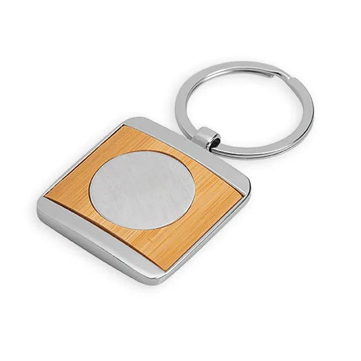 Portachiavi Modello K37 In Finitura Cromata Con Particolare In Bamboo, Con Inserto Da 25Mm. Dentro A Scatola Regalo Nera