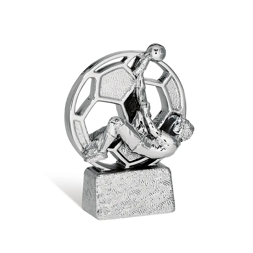 Trofeo In Resina Metallizzato Soggetto Rovesciata In Finitura Argento Metallizzata